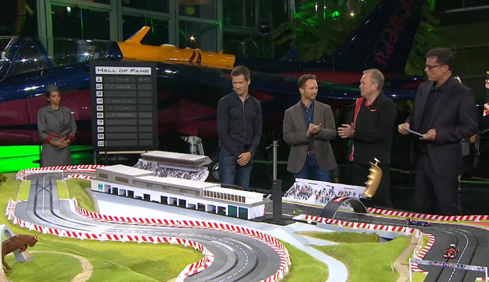 Tijdens een tv opname van Red Bull in Hangar-7 zag Max een slotracebaan van de Red Bull Ring : een perfecte invulling voor de promotie van het brillenmerk !
